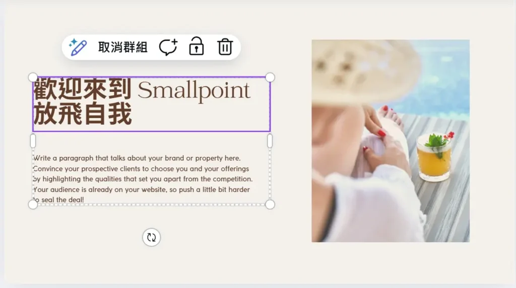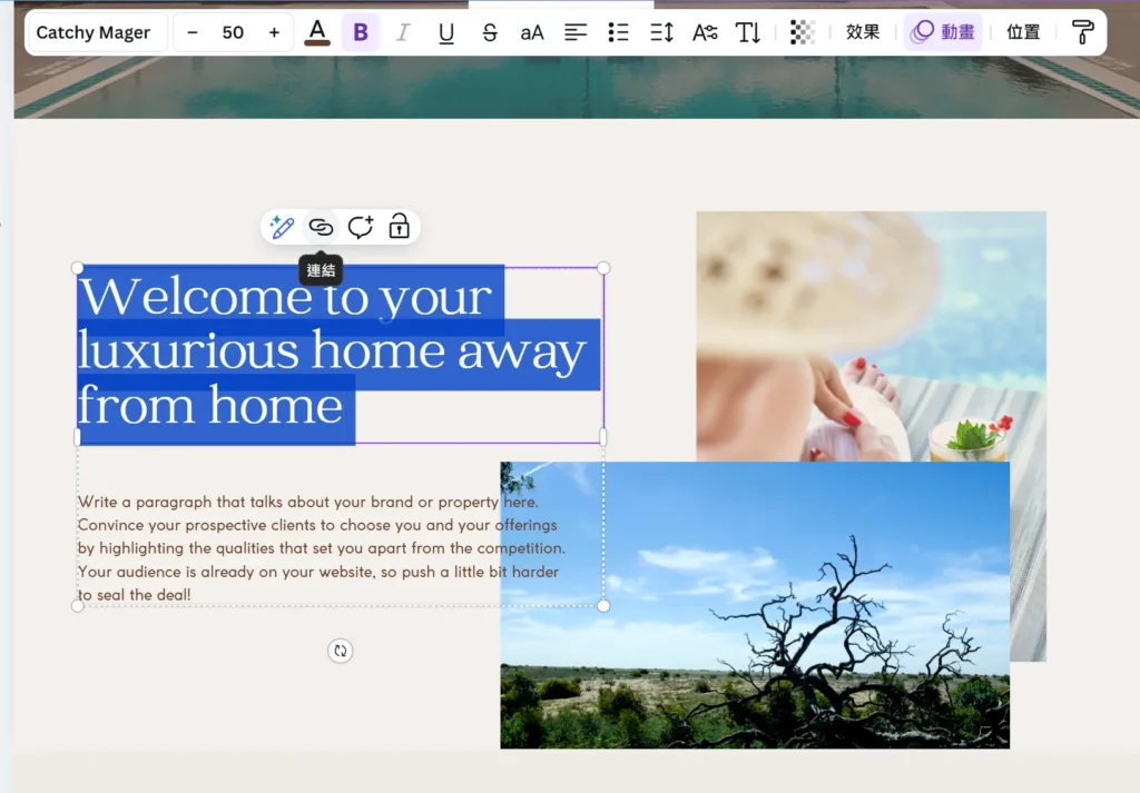 在 Canva 內替換文字與圖片的操作畫面