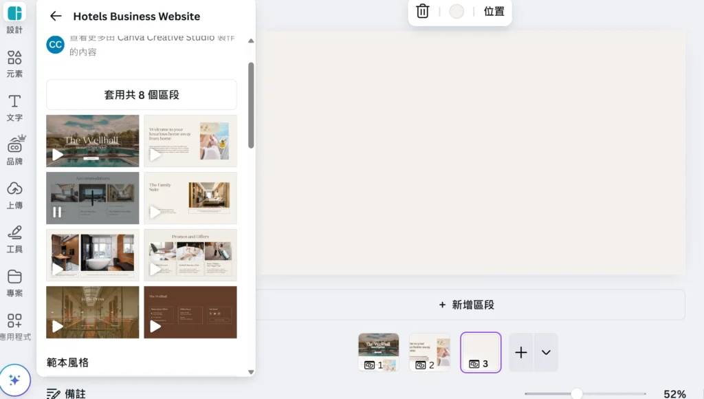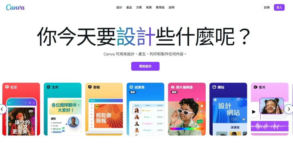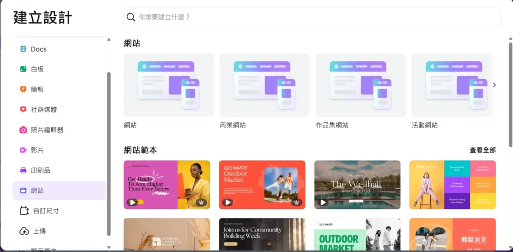 這時候,Canva 提供了一條「平民化的快速道路」:它原本就是一個簡單易用的線上設計工具,現在直接內建 網站製作功能。不需要寫任何程式碼,也不用額外安裝主機,你只要挑選一個版型、拉一拉圖片、改一改文字,幾分鐘後就能擁有一個可以公開分享的網站。