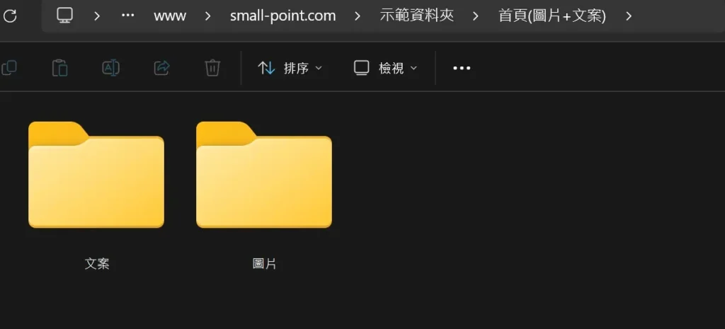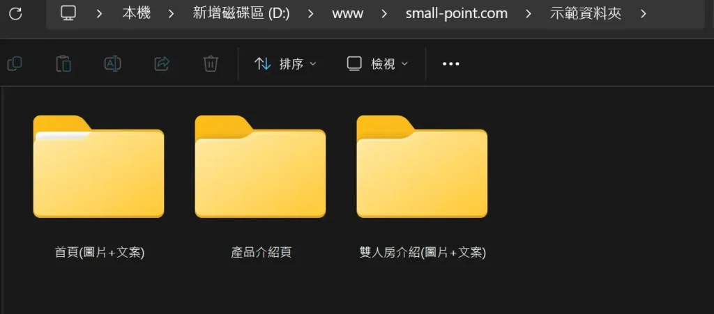 先列出你的主選單(例如:首頁、關於我們、服務、案例、聯絡),然後在專案資料夾中建立對應的子資料夾。