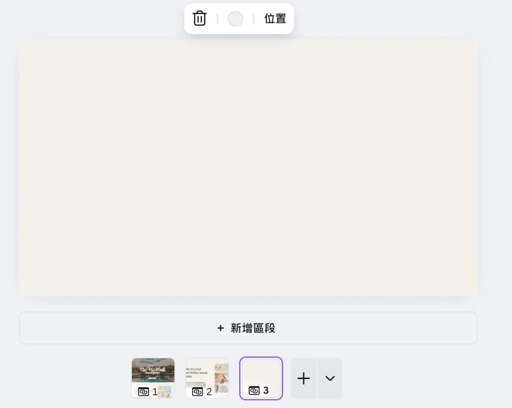 選好範本後,畫面下方會顯示頁面縮圖列。點擊中央下方的 可新增頁面。