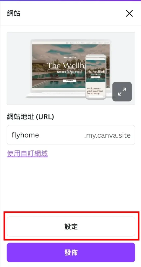 設定 xxx.my.canva.site 免費子網域的畫面