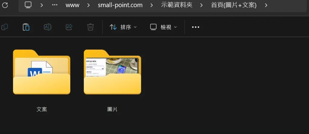 2.3 子資料夾內再建立「圖片」與「文案」