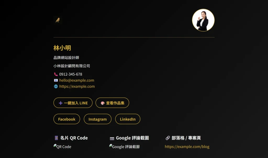 試想一下,如果你的電子名片不只是聯絡資訊,而是 專屬於你的數位舞台,會是什麼樣子?