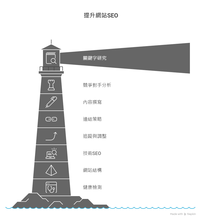 真正的 SEO,遠不只是填幾個欄位,而是一整套完整的工程。它包含: