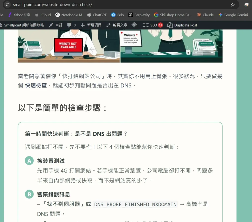 這篇文章,我會從 5 個最常見的原因帶你逐一排查,並提供實際可操作的解決方式,幫你減少客戶誤會、降低售後支援壓力,甚至讓你的網站在 SEO 與 UX 表現上更加穩定。